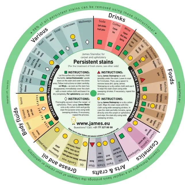 მათ შორის წითელი ღვინო, ყავა, შოკოლადი, სისხლი, კოსმეტიკა, ცხიმოვანი ლაქები...