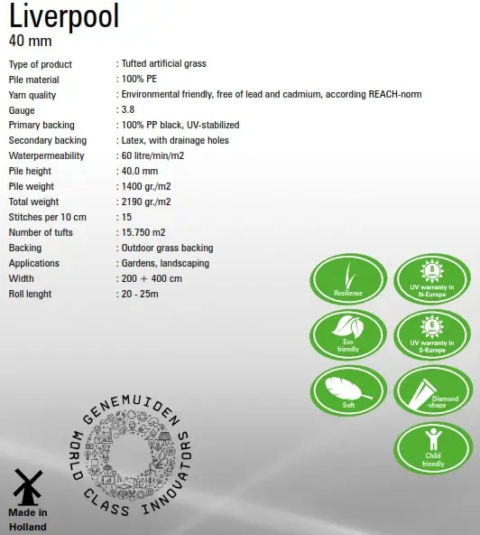 გვთავაზობენ 40მმ სისქის 2 ძაფიან რეალისტურ ხელოვნურ ბალახის რულონებს,
