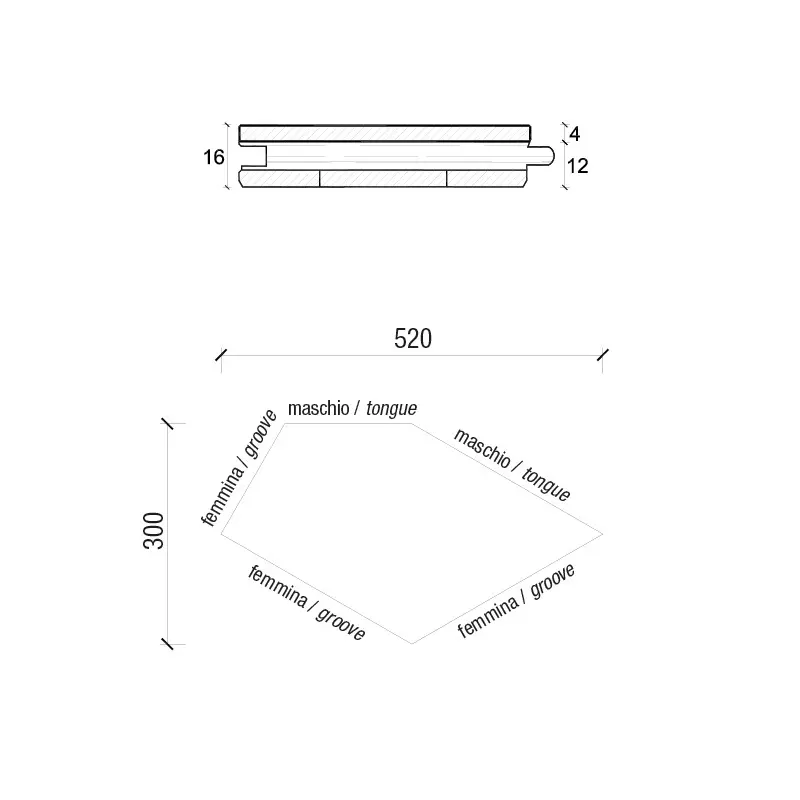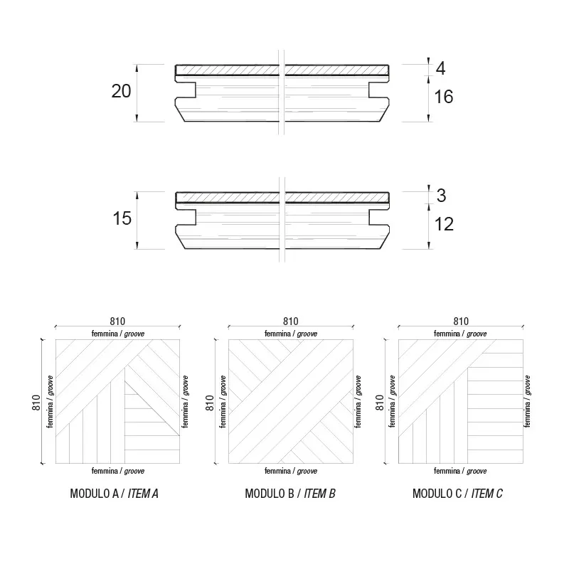 იტალიური ნატურალური ხის, ორ შრიანი პანელები კედლებისა და იატაკისთვის.
